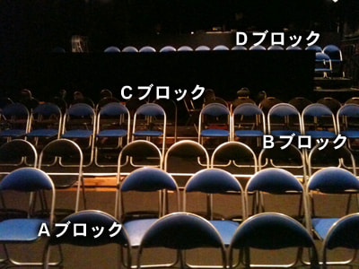Bブロックは舞台から少し距離がありますが、1段あがった観やすいお席です。まぁまぁ近くで、でも全体を俯瞰して観たいお客様にオススメです。中央部分は指定席となります。