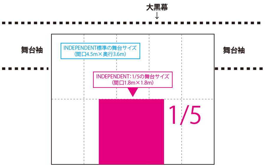 「INDEPENDENT:1/5」は、INDEPENDENTフォーマットの1/5に当たる6分以内の長さ、1間×1間(180cm四方)のアクティングエリアを使った短編一人芝居(ワンシーン一人芝居?!)を製作し、youtube上に発表する一人芝居企画です。