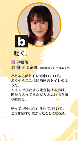 ※作品の間には転換と換気時間を取りますが、3作品を連続上演いたします。1ステで3作品ご覧いただけます。