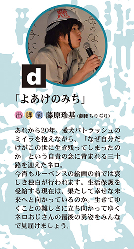 テクニカルワーク(舞台・音響):INDEPENDENT CreativeTeam / 照明:平戸謙好 / 宣伝美術:T.A.(at will)