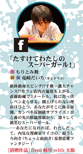 多数の応募から厳選された盛岡勢5組と本拠地大阪公演で好評を得た招聘1組の計6作品が真冬の盛岡を一人芝居で熱くする!